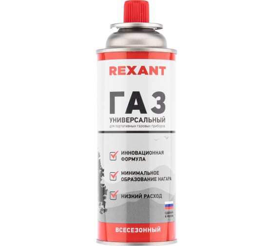 Газ в баллоне REXANT всесезонный, универсальный, 220 гр 09-1414 предназначен для использования с газовыми горелками (резаками), в качестве картриджа для портативных плит, обогревателей и ламп. Сферы применения – это туризм, строительство, кулинария, декор и любые виды хозяйственных работ. Обновленная формула смеси позволяет более стабильно работать в сравнении с аналогами и экономит до 10% топлива. Является одним из самых экологичных видов топлива.