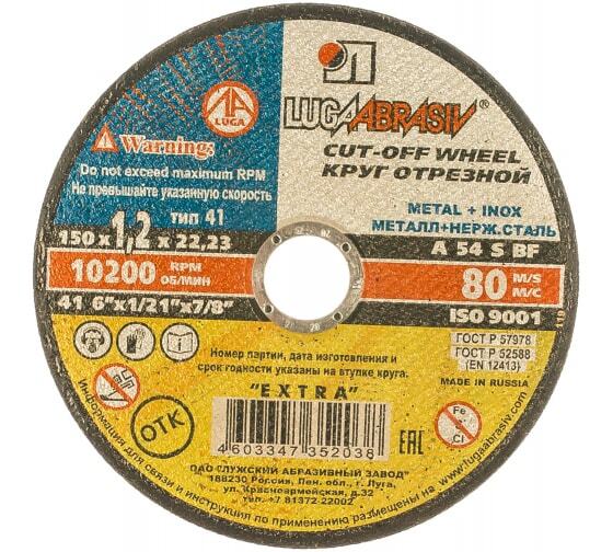 Круг отрезной абразивный по металлу Луга, 150х1,2х22,2мм