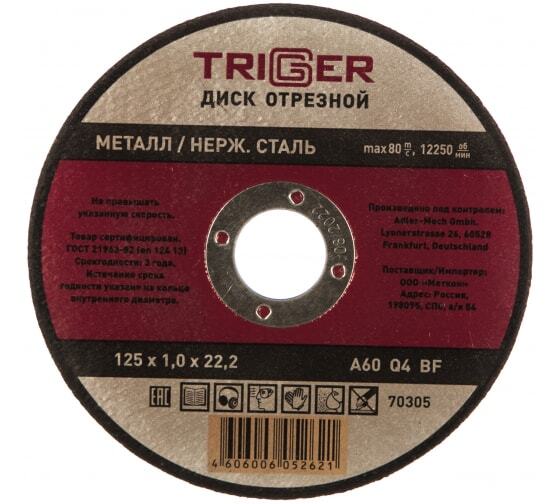 Круг отрезной по металлу и нерж.стали ТРИГГЕР 125х1,0х22,2 мм