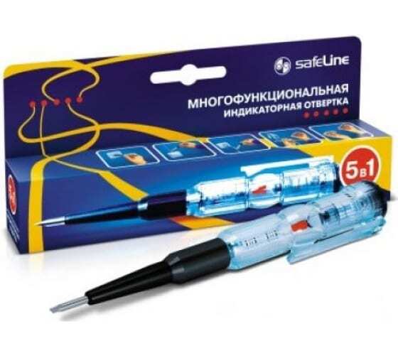 Индикаторная отвертка многофункциональная Safeline MS-18 11692 представляет собой прибор "5 в 1", который позволяет с легкостью определить переменное напряжение контактным способом до 250 В ("фаза-ноль") и бесконтактным способом до 600 В (скрытая проводка), определить место обрыва кабеля бесконтактным способом, проверить целостность электрической цепи контактным способом (прозвон), а также определить полярность элементов питания (батареек или аккумуляторов от 1,5 до 36 В постоянного тока). Данное устройство полностью соответствует ГОСТ Р 52319-2005.