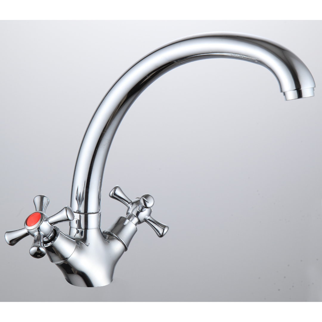 Смеситель для кухни Rainsberg оснащён двумя вентилями для регулировки напора горячей и холодной воды. Наличие аэратора в смесителях позволит обеспечить равномерную подачу воды и ее смягчение. Специальная сетка отфильтровывает разнообразные примеси. Этот тип смесителей отличается одним из самых простых видов монтажа, прибор фиксируется на раковине посредством гайки. Гайка надежно прижимает его к поверхности, закручиваясь с обратной стороны монтажного отверстия. данная модель в классическом стиле. Прибор изготовлен из силумина, это не очень надежный материал, в отличии от прочих. Чаще всего модель покупают на небольшое время. Служит около 2-5 лет. Прибор традиционной округлой формы. Излив имеет возможности вращения, что повышает практичность. Данный тип смесителей оснащается кран-буксой. Несмотря на большой возраст данной технологии, она как и прежде довольно популярна по причине своей надежности и практичности использования. Монтаж модели осуществляется на одно отверстие под смеситель.