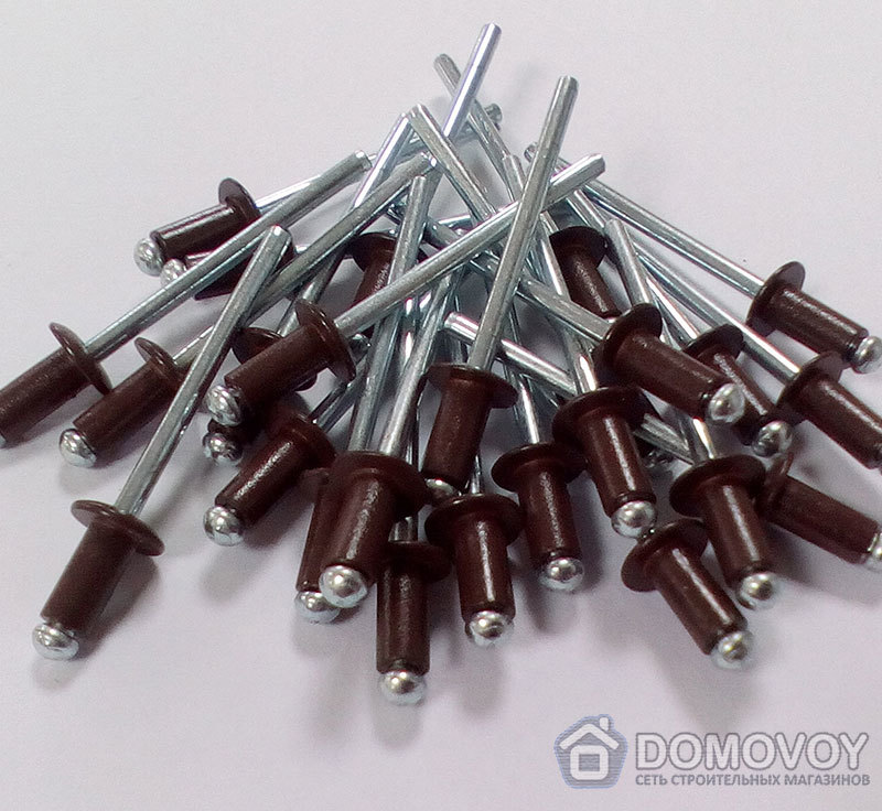 Заклепки применяются для скрепления между собой листовых материалов из металла, древесины, пластмассы, кожи. Устанавливаются в отверстие, после чего расклепываются со стороны стержня, образуя прочное соединение. Вытяжной стержень заклепки изготовлен из оцинкованной стали. Гильза выполнена из алюминия.